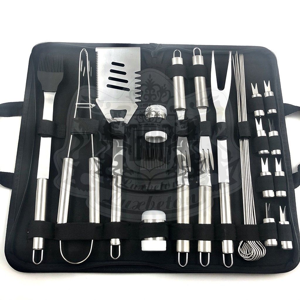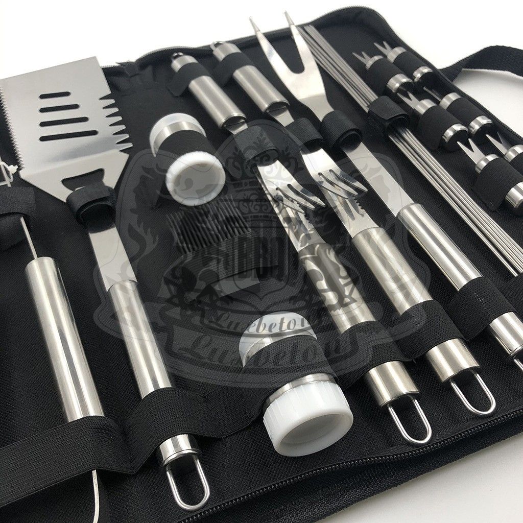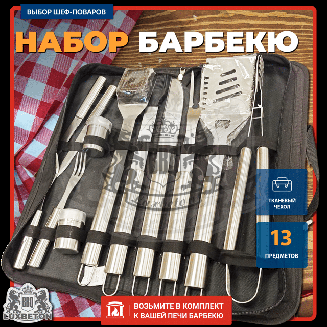Набор барбекю из 13 предметов в тканевом чехле. Набор включает в себя 13 самых востребованных предметов для комфортного приготовления блюд на огне. Все предметы изготовлены из нержавеющей стали, а тканевый чехол сохранит их в целости на долгие годы