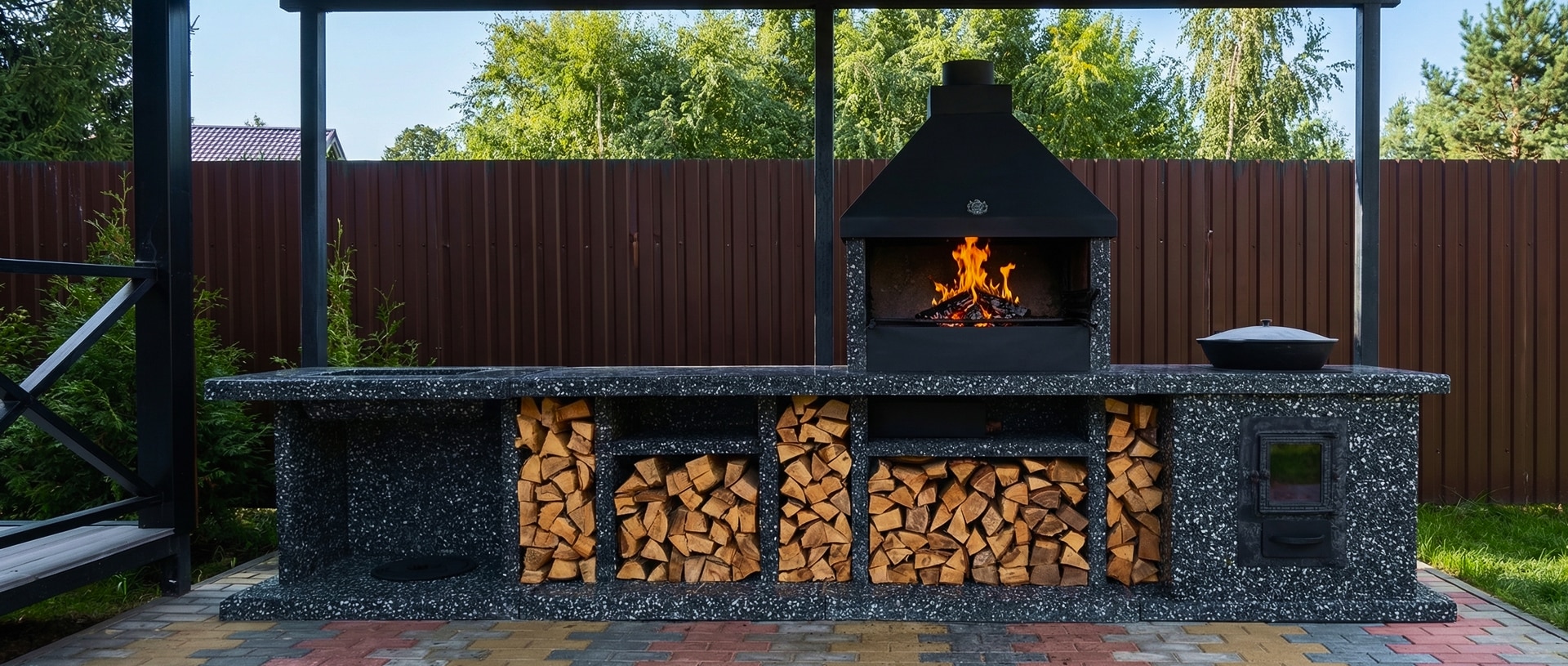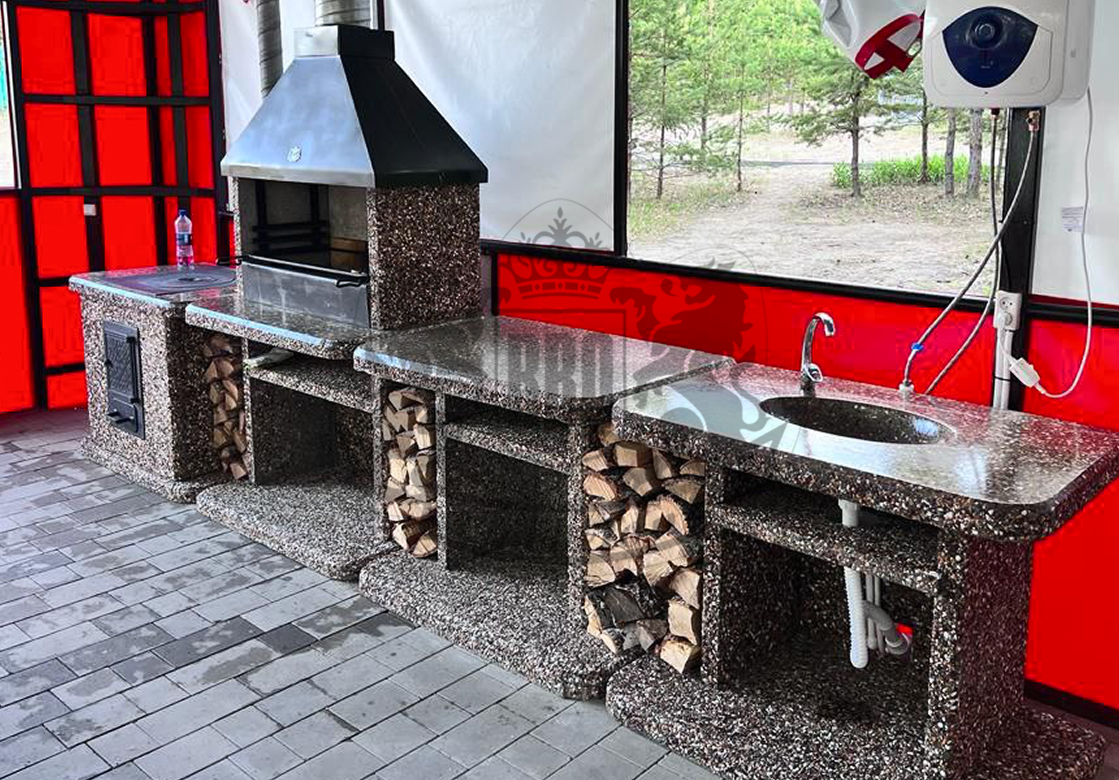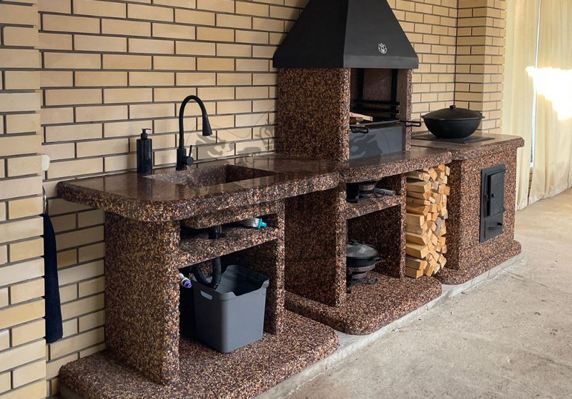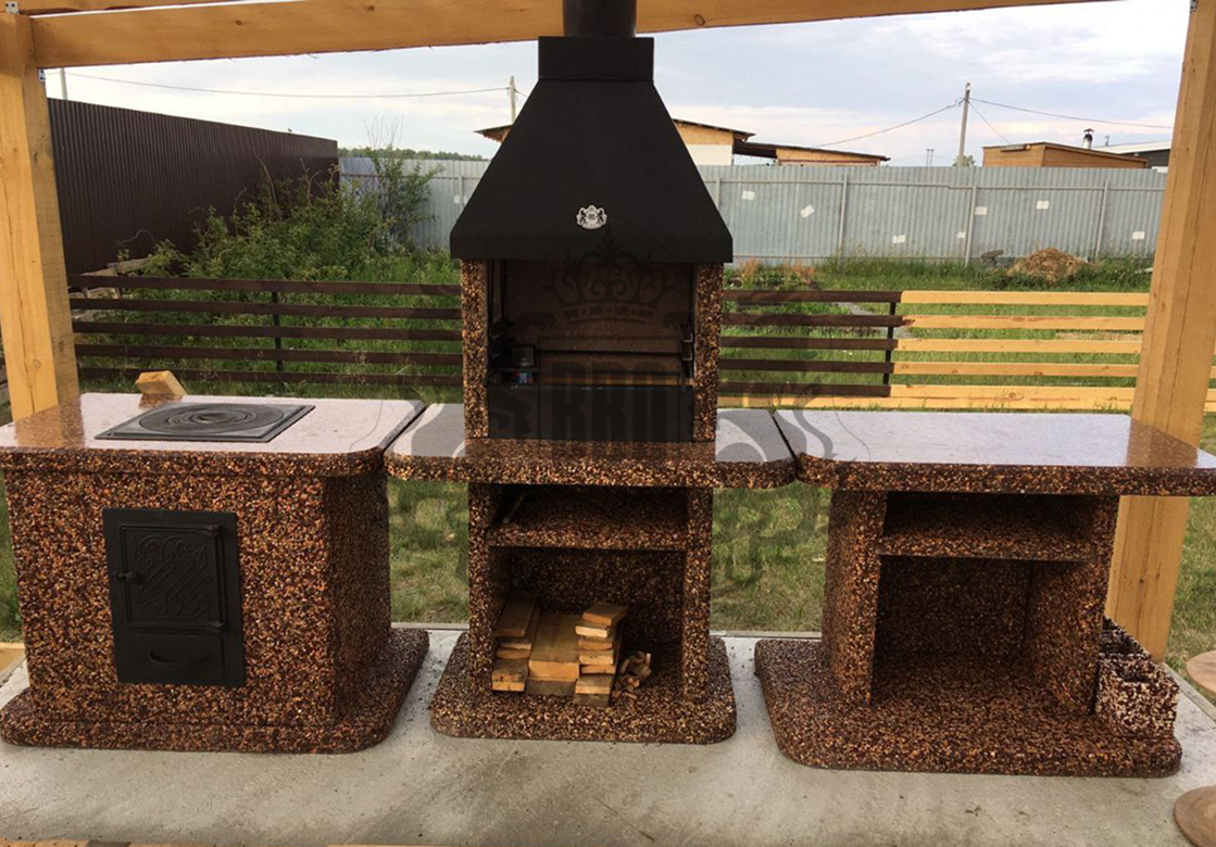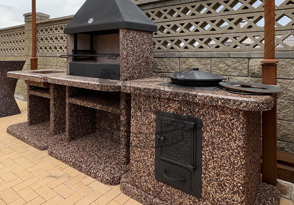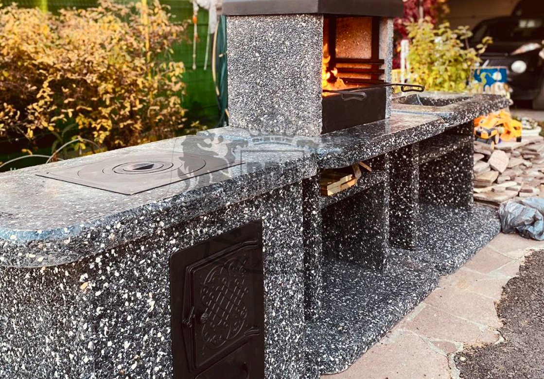 Создайте зону для шашлыка на даче добавив печь под казан в фактуре “”Ночное небо”” Габбро-диабаз и мрамор создают чёрно-белый контраст,...