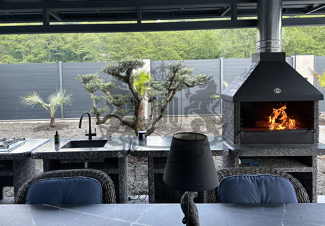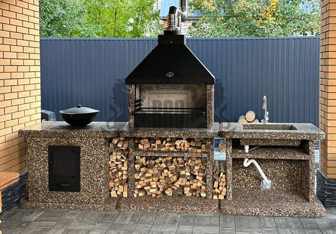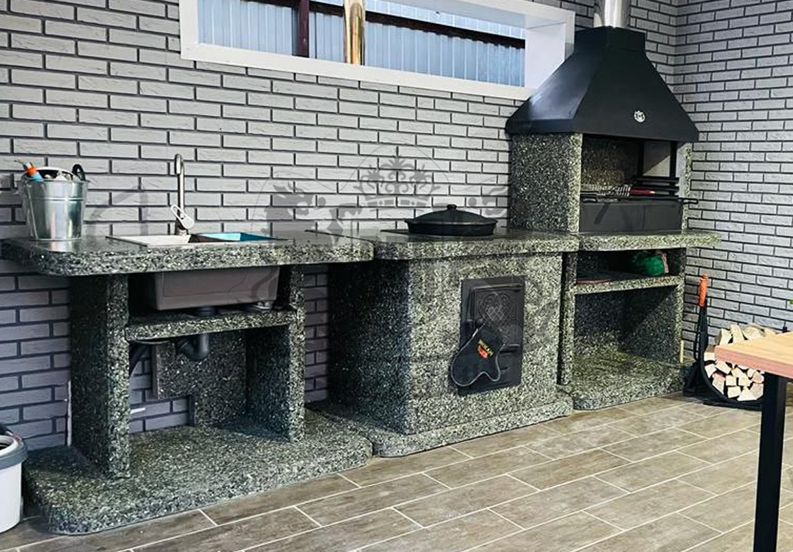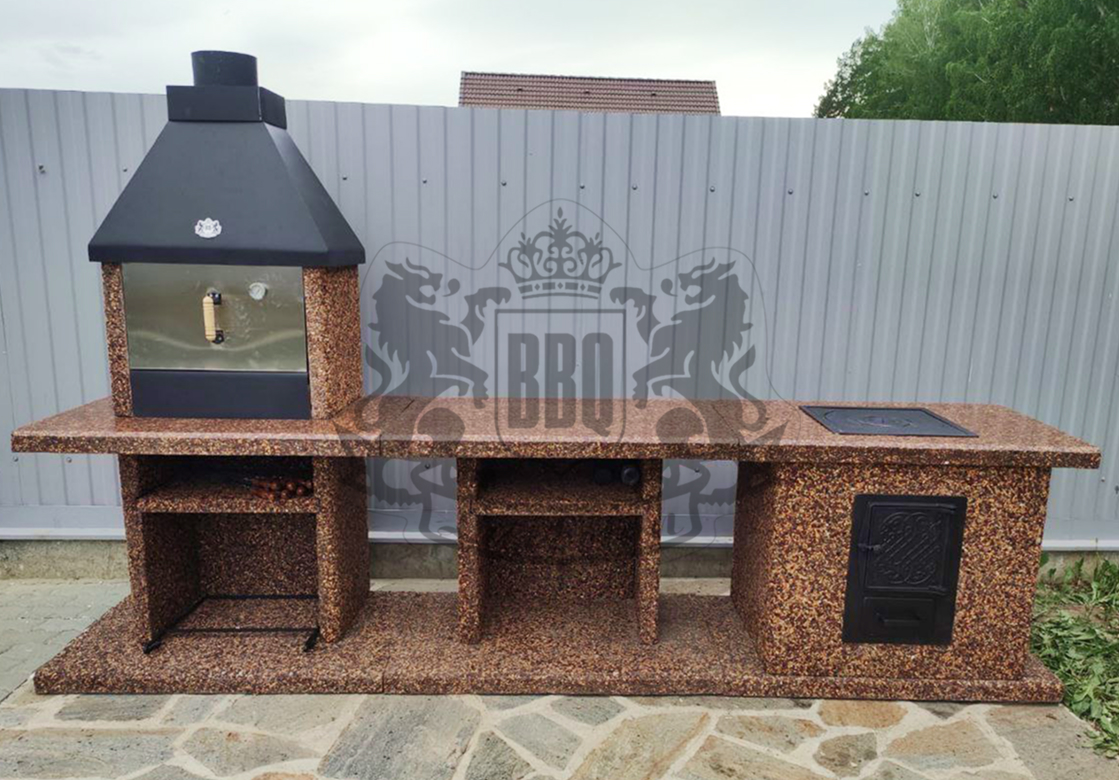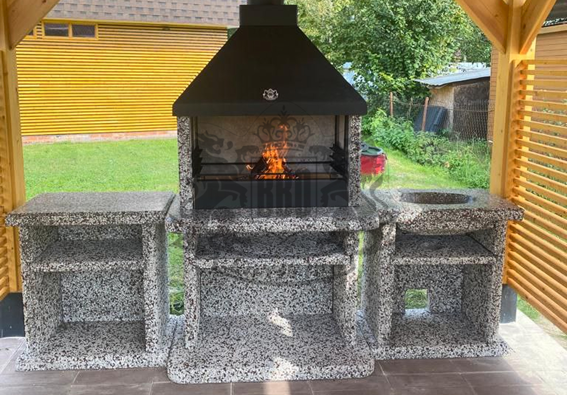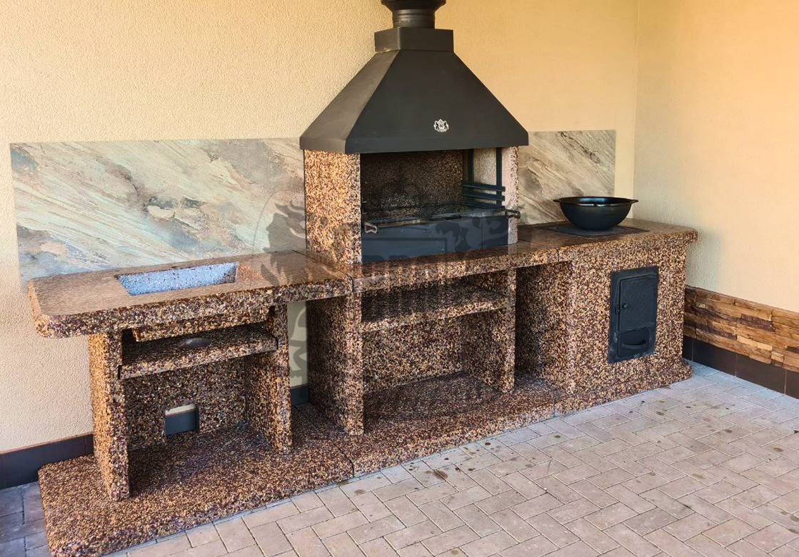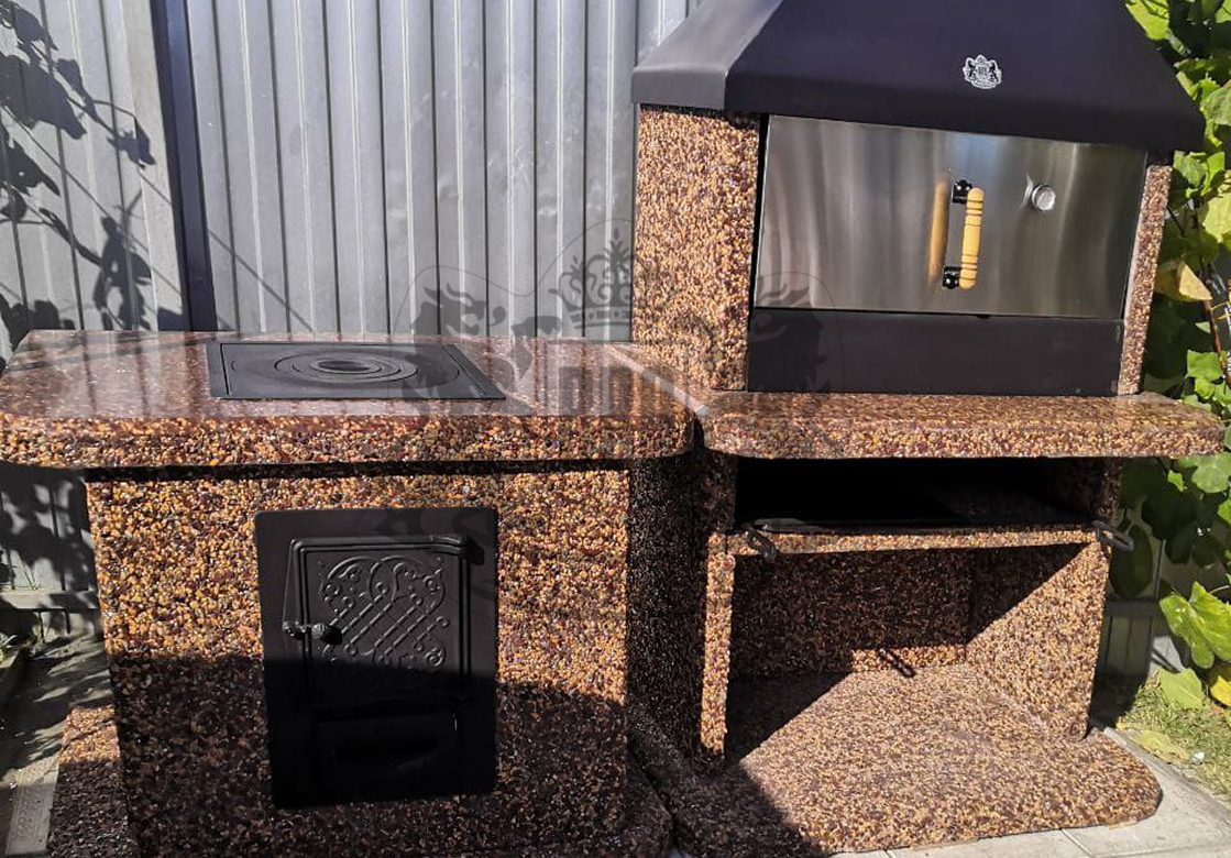 Печь под барбекю комплекс в фактуре «Змеевик» — это долговечность и стиль. Змеевик и габбро-диабаз создают глубокий зелёно-чёрный градиент. Чугунная...
