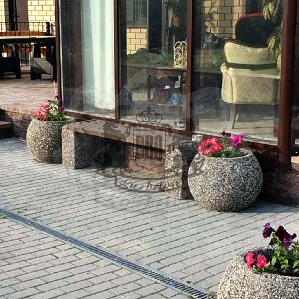 Уличная скамья из натурального камня и сосны ДхШхВ: 1700х400х450мм Вес 230кг Изделия Разнообразие цвета и фактур В составе полудрагоценные камни из Уральских гор (Яшма Златолит Змеевик Кремний Мрамор Габбро-диабаз Фельзит) Качественные изделия. Бетон прочности М600 и морозостойкости F300-350 Возможности Изготовление нестандартных дизайнерских решений Собственное производство под любой запрос Ежегодно благоустраивается более 100 000 в.м скверов и парков Более 3000 довольных клиентов по благоустройству собственных участков Подход Личный менеджер – сопровождение на всех этапах сотрудничества от разработки сметы до выполнения на объекте и даже после Гибкие индивидуальные условия сотрудничества включающие Ваш интерес Стоимость и порядок оплаты зависят от объема работ. Скидки до 30% 10 лет безупречной работы профессионалов
